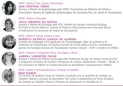 O Evento contará com uma conversa com atores do Sistema de Garantia de Direitos da Criança e do Adolescente, a partir do Relatório Sinais Vitais 2016 que traz informações relevantes sobre a situação das crianças e adolescentes de Florianópolis para que possam orientar decisões e políticas públicas. Os resultados dos Sinais Vitais serão apresentados mais detalhadamente por especialistas envolvidos na co-construção do relatório e discutidos com gestores do Sistema de Garantias de Direitos da Criança e do Adolescente de Florianópolis, membros da comunidade acadêmica e demais interessados.