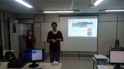 Durante a aula os ex-alunos da disciplina, André e Luiza, apresentaram
